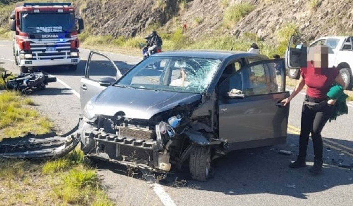 En horas de la tarde de este domingo y por causas que se tratan de establecer, en la ruta provincial E-98, conocida como Camino del Cuadrado, kilómetro 6 1/2, se produjo un siniestro vial que involucró a una motocicleta marca Bajaj y a un automóvil Volkswagen Up.