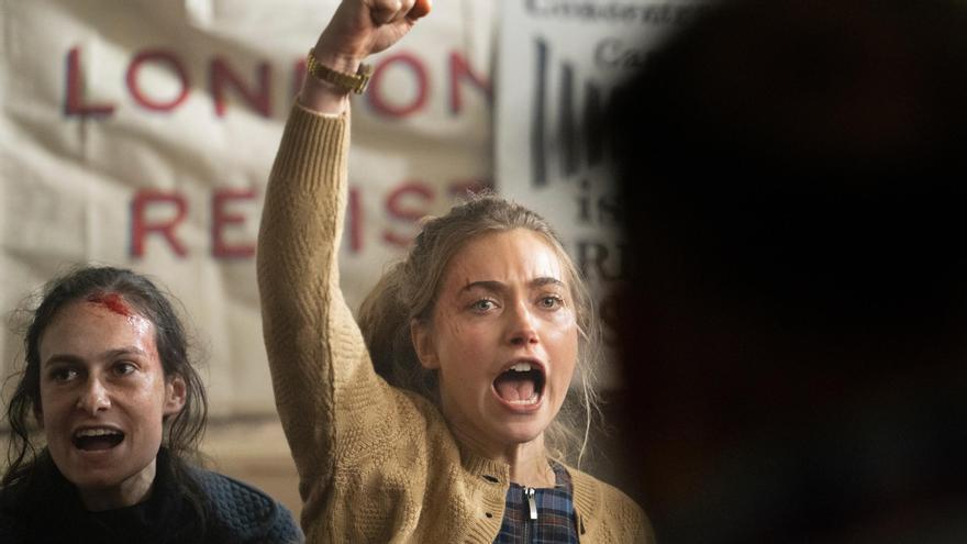 La película se pierde bastante en sus permanentes saltos temporales, una fragmentación narrativa que en este caso poco o nada aporta a la evolución personal de la protagonista, desde que se concienciara en la lucha contra el patriarcado en la universidad de Oxford hasta el secuestro de una familia aristocrática en su huida con los valiosos lienzos. Imogen Poots da credibilidad a la figura central, su rabia y sus valores, también su obcecación y violencia. De joven quedó impresionada por el cuadro de Velázquez ‘La cena de Emaús’, que representa a una sirvienta negra en el centro del encuadre de una cocina, y esta pintura, ahora sustraída, se convierte en metáfora de su propia actitud.