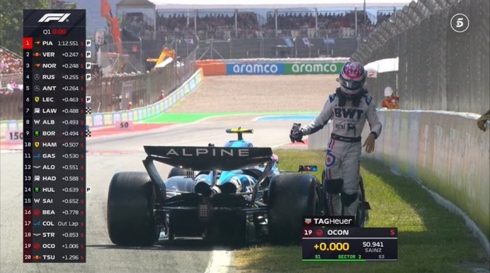 El piloto se bajó y mostró muchos signos de decepción. Sainz, Tsunoda, Ocon y Hulkenberg también quedaron afuera.