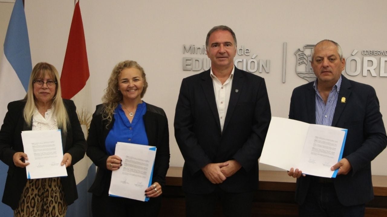En un acto encabezado por el ministro de Educación, Horacio Ferreyra, la intendenta de Cuesta Blanca, Ana Gaitán; el jefe comunal de Plaza Luxardo, Víctor Hugo Alessio; y la intendenta de Pascanas, Mariela Alejandra Lolich, firmaron los acuerdos que formalizan su participación en el programa.