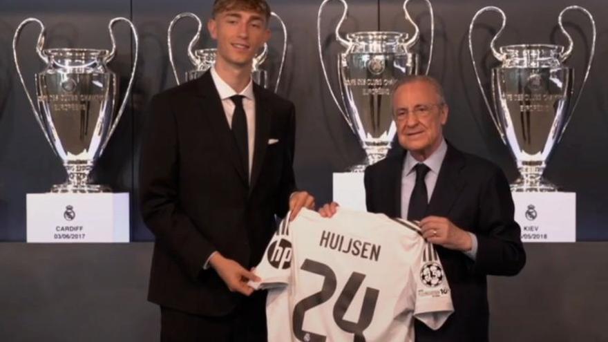 Dean Huijsen ya es jugador del Real Madrid. El internacional español, nacido en Holanda y criado en Málaga, vestirá la camiseta del club blanco hasta el 30 de junio de 2030. Defensa ambidextro de 1,97, Huijsen lucirá el dorsal número 24. El jugador, de 20 años, ha pasado esta mañana el reconocimiento médico, para después firmar en la sala de juntas de Valdebebas su contrato junto a Florentino Pérez, para luego posar con su nueva camiseta en la sala de trofeos del club delante de las 15 Copas de Europa del Real Madrid. A las 12:30 comparecerá en rueda de prensa.