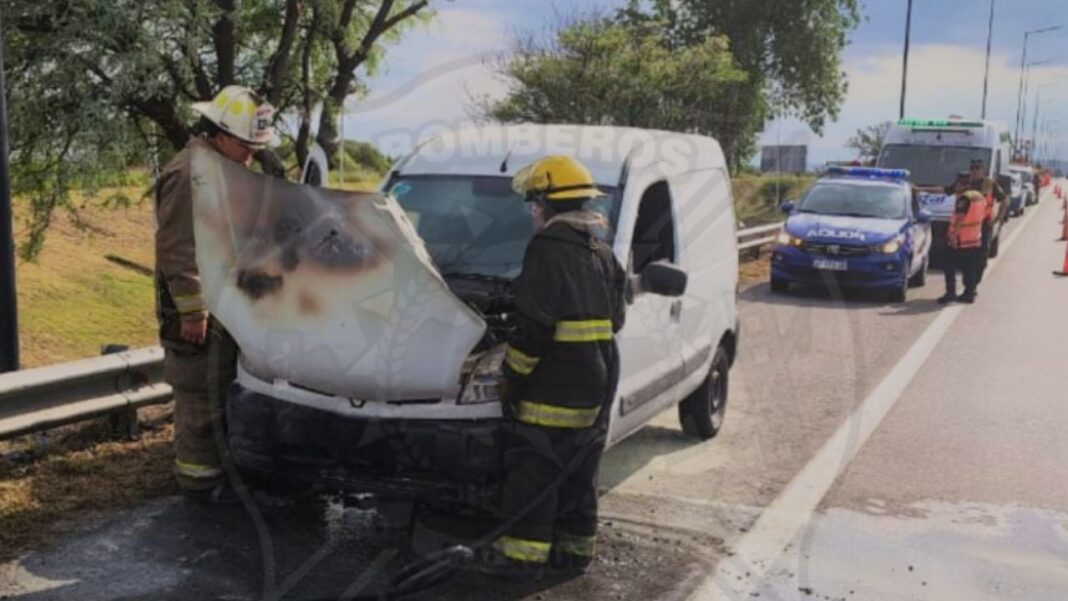 El fuego se originó en el compartimiento del motor de un vehículo utilitario, extendiéndose parcialmente hacia la cabina. Rápidamente, las dotaciones lograron contener las llamas y evitar que el siniestro se propagara al resto del vehículo.
