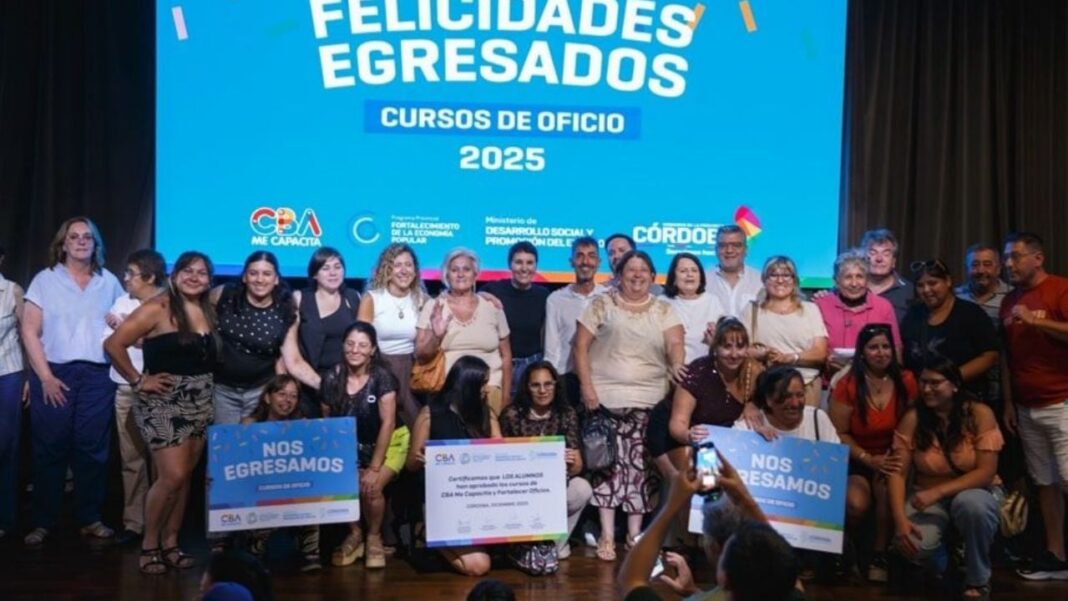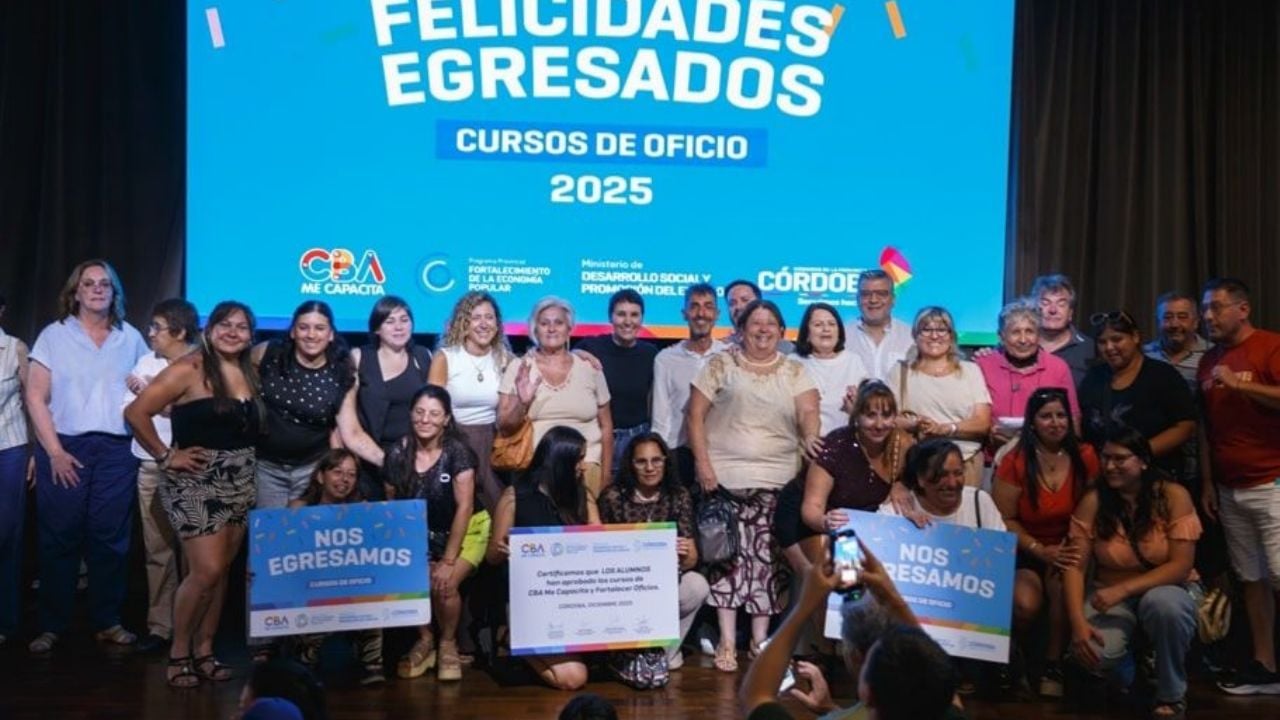 Un total de 2.044 egresadas y egresados de la ciudad de Córdoba recibieron este martes sus diplomas tras completar los cursos del programa CBA Me Capacita, en un acto realizado en el Auditorio del Centro Cívico. La entrega incluyó también a quienes aprobaron los talleres Fortalecer Oficios, orientados a fortalecer la inserción laboral y productiva.