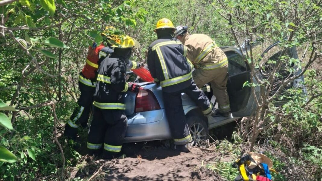 Las dotaciones trabajaron durante varios minutos realizando maniobras para estabilizar el rodado, abrir las puertas y rescatar al conductor, quien se encontraba consciente y era el único ocupante.