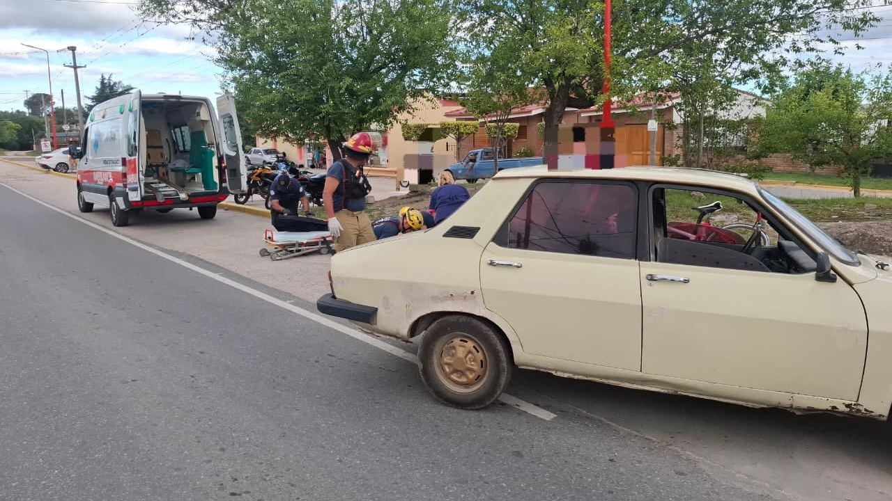 Un hombre de 35 años que conducía un vehículo Renault 12 colisionó contra una bicicleta donde iba otro sujeto de 45 años. El ciclista sufrió politraumatismos en el miembro inferior derecho y fue trasladado al Hospital Domingo Funes para una mejor atención médica.