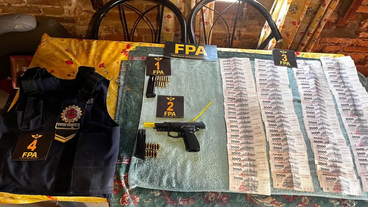 En el total de los domicilios, se secuestraron varias dosis de marihuana, dos plantas de cannabis sativa, dinero, tres armas de fuego (calibre 9, 22 y 38), 35 municiones, dos cargadores, un chaleco perteneciente a la Policía de Córdoba, una balanza digital, una motocicleta y una cámara de seguridad.
