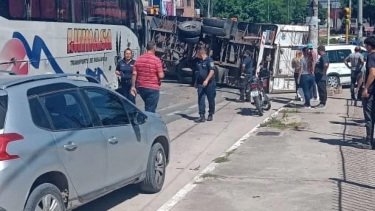 Villa Giardino. Un camión de transporte de ganado vacuno protagonizó un impresionante accidente este lunes por la tarde en Villa Giardino, cuando se quedó sin frenos a la altura del semáforo ubicado sobre la Ruta 38 y terminó volcando su jaula en plena vía.